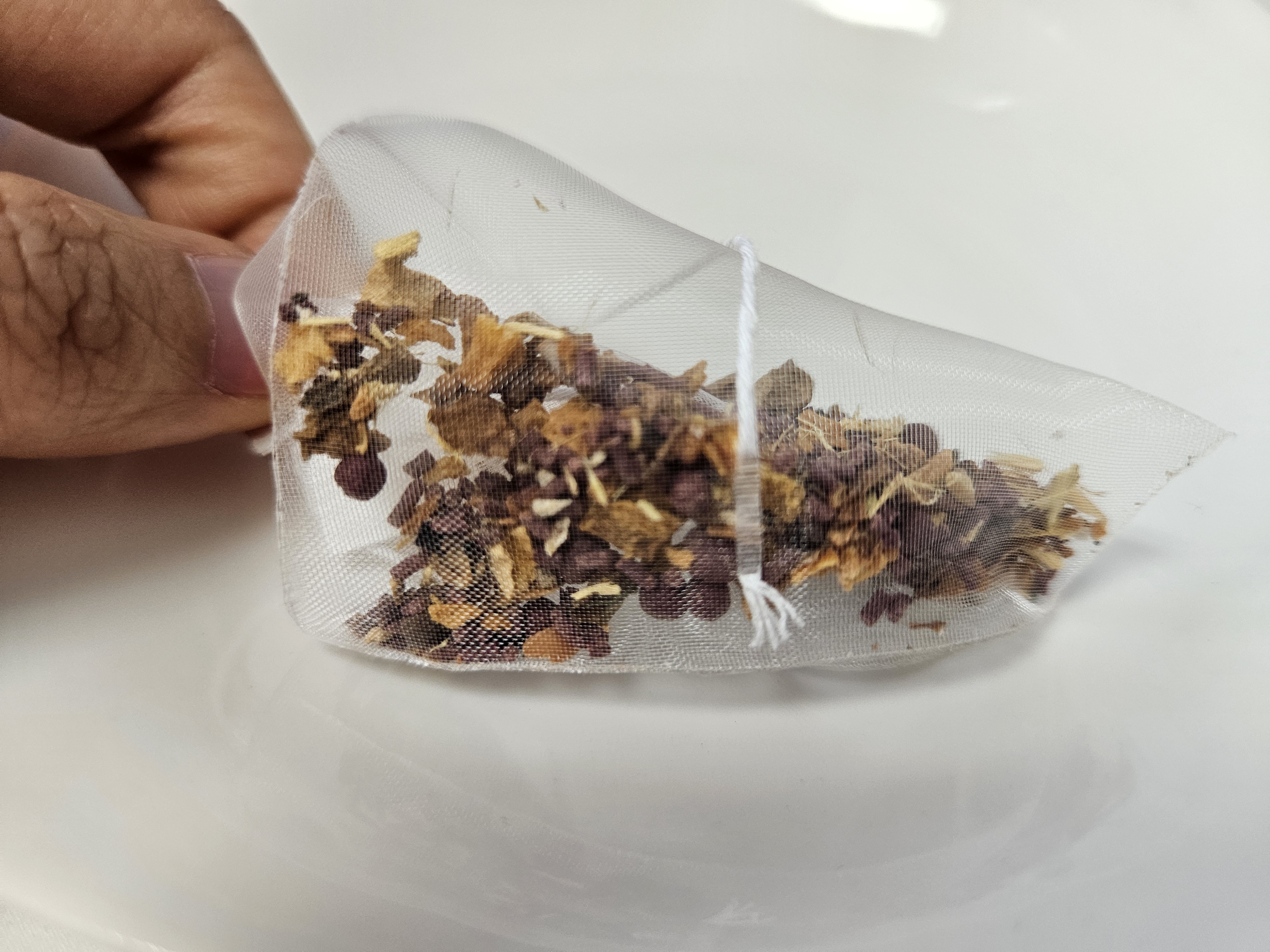 티백 줄이 18cm로 길어서 컵에 빠질 걱정 없고, 미세플라스틱 걱정 없는 무접착제 티백이라 안심이에요.