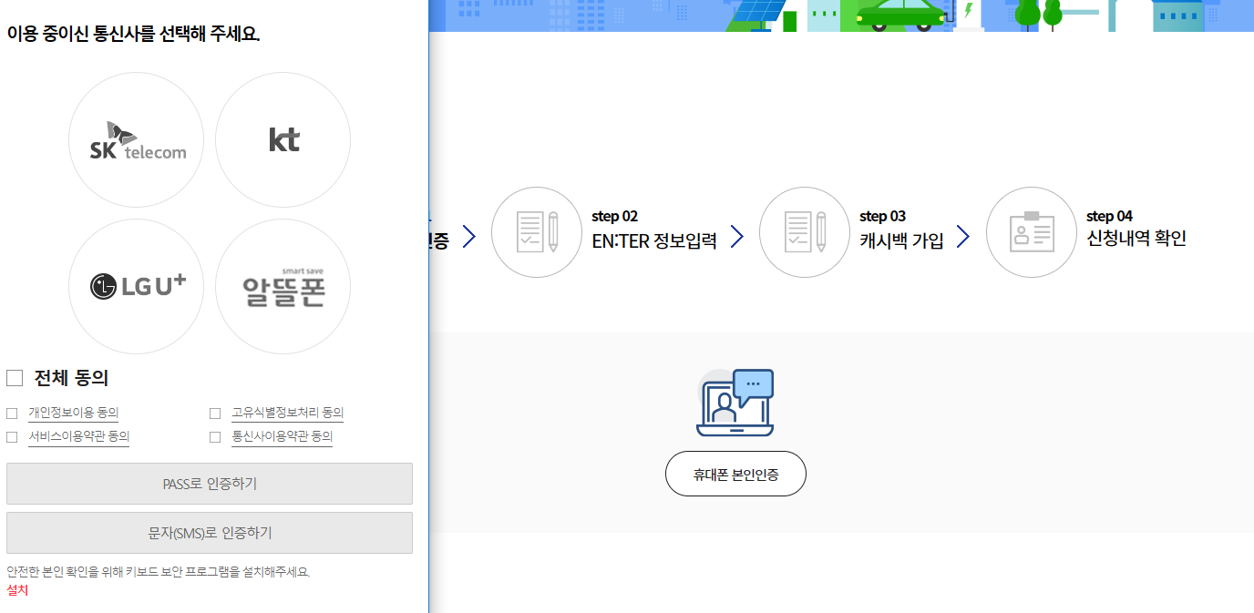 캐시백 참여 완료 화면이 뜨면 완성이고 문자로도 안내가 와요