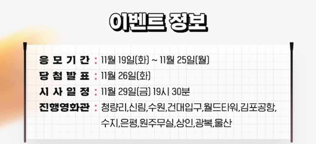 시사회 당첨자 발표는 11월 26일 화요일입니다