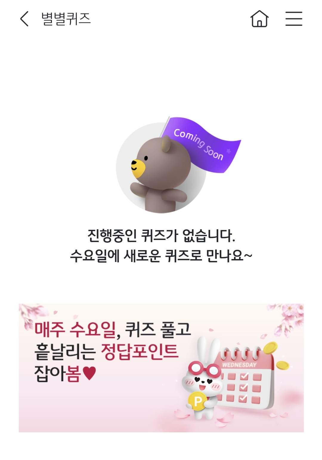 수요일에는 별별퀴즈 맞추면 50포인트 받을 수 있어요