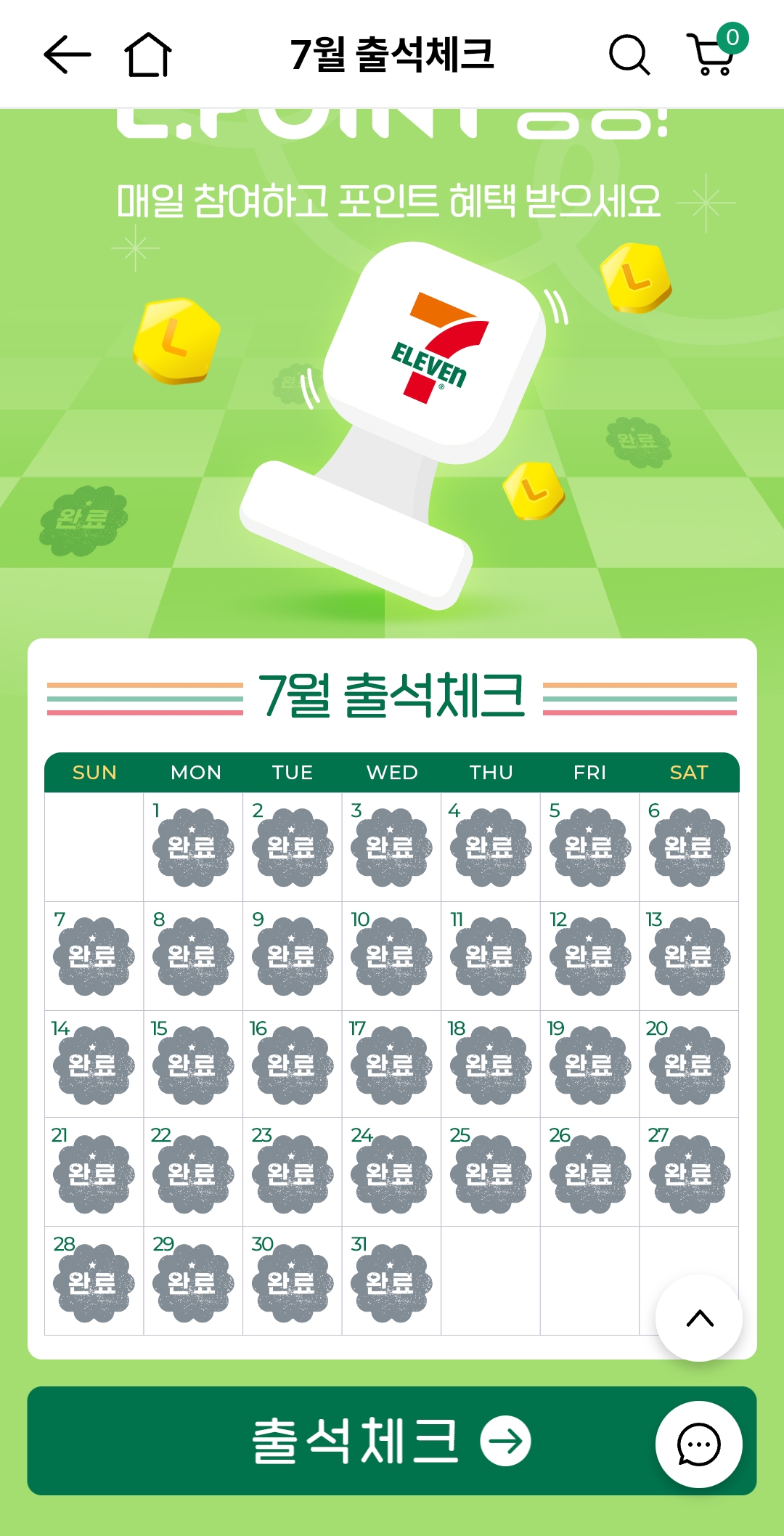 다른 출석체크 앱테크와 다르게 GS25 나만의 냉장고에서는 25일만 출석체크하시면 편의점 상품을 하나 받으실 수 있어요