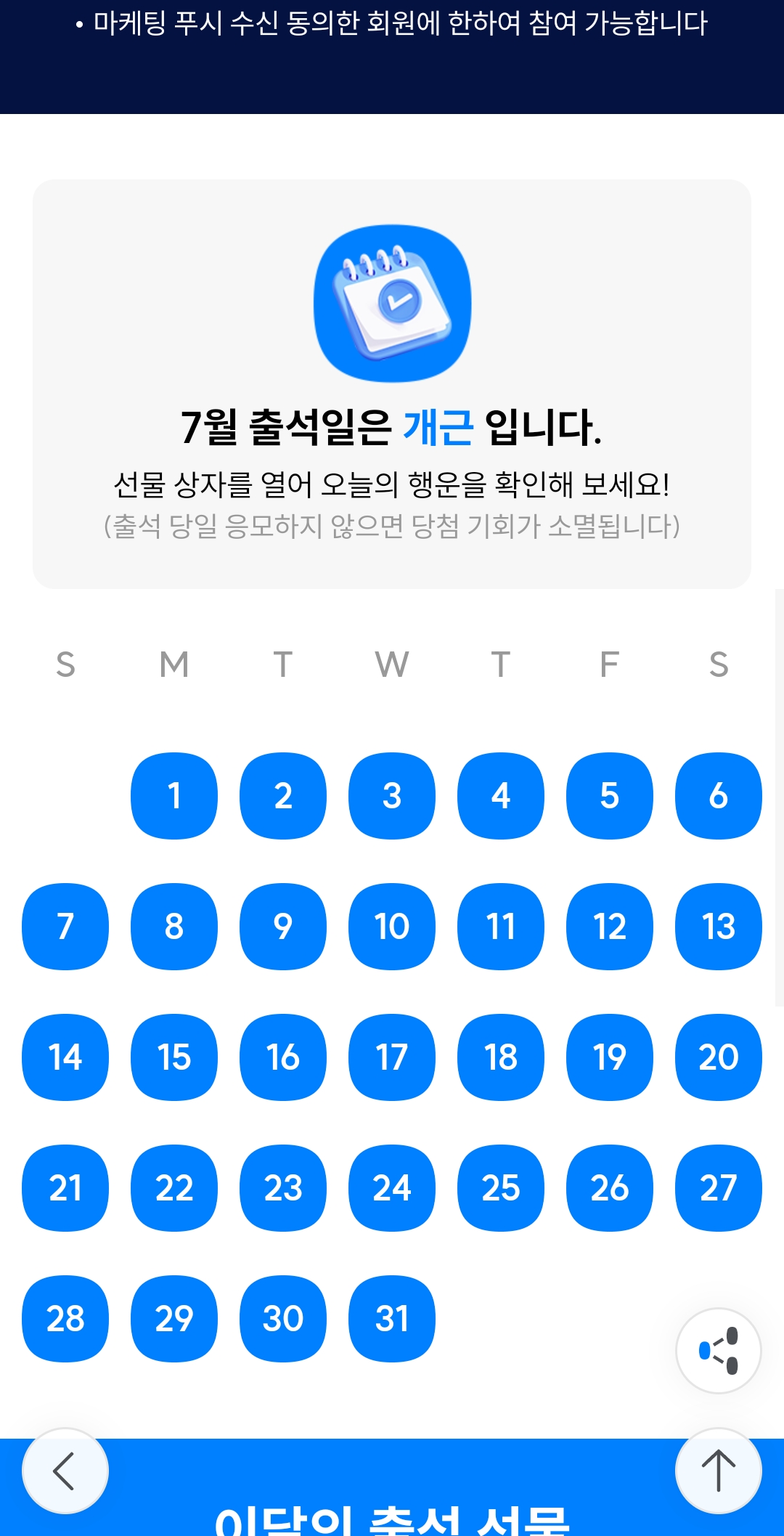 서울오빠는 블로그 체험단으로 가입하게 되었는데 출석체크가 있더라구요