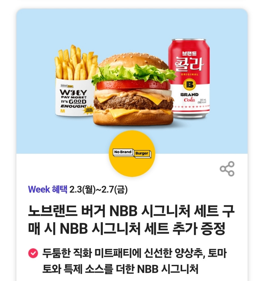NBB 시그니처 세트 : NBB 시그니처 버거 + 감자튀김 + 콜라