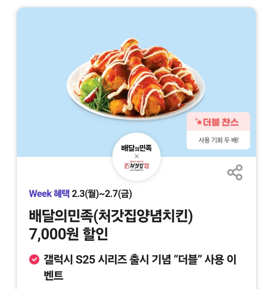 처갓집양념치킨 모든 메뉴 16,000원 이상 주문 시 7,000원 할인