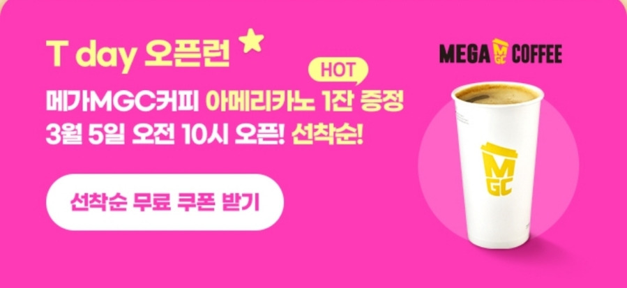 오전 10시부터 선착순 20만 명메가 MGC커피 아메리카노 1잔 무료쿠폰 받을 수 있어요