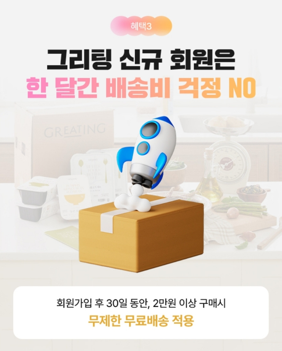 신규 가입자에겐 총 10만 원 상당의 웰컴 쿠폰팩과 한 달 동안 2만 원 이상 구매 시 배송비 무료예요
