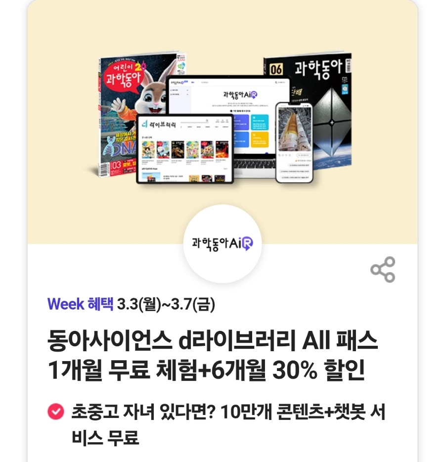 동아사이언스 d라이브러리 All 패스 1개월 무료 체험 + 6개월 30% 할인